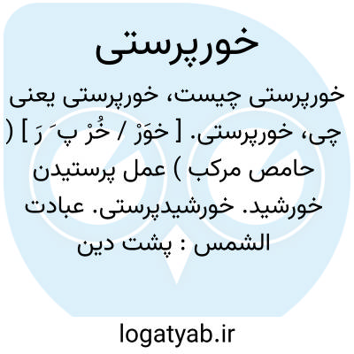 خورپرستی. [ خوَرْ / خُرْ پ َ رَ ] ( حامص مرکب ) عمل پرستیدن خورشید. خورشیدپرستی. عبادت الشمس: