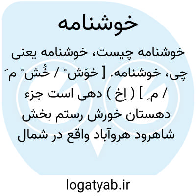 خوشنامه. [ خوَش ْ / خُش ْ م َ / م ِ ] ( اِخ ) دهی است جزء دهستان خورش رستم بخش شاهرود هروآباد واقع در شمال هسجین. کوهستانی و معتدل با 144 تن سکنه. ( از فرهنگ جغرافیایی ایران ج 4 ).