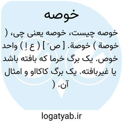 ( خوصة ) خوصة. [ ص َ ] ( ع اِ ) واحد خوص. یک برگ خرما که بافته باشد یا غیربافته. یک برگ کاکااو و امثال آن. ( منتهی الارب ) ( از تاج العروس ) ( از لسان العرب ) ( مهذب الاسماء ).