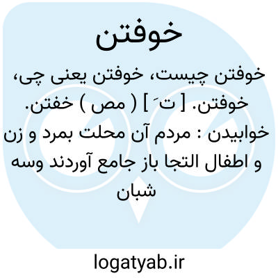 خوفتن. [ ت َ ] ( مص ) خفتن. خوابیدن: مردم آن محلت بمرد و زن و اطفال التجا باز جامع آوردند وسه شبان روز نخوفتند. ( المضاف الی بدایع الازمان ).