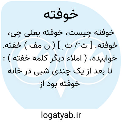 خوفته. [ ت َ/ ت ِ ] ( ن مف ) خفته. خوابیده. ( املاء دیگر کلمه خفته ): تا بعد از یک چندی شبی در خانه خوفته بود از روزن شکل دختری نزول کرد. ( جهانگشای جوینی ).