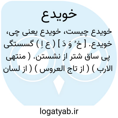 خویدع. [ خ ُ وَ دَ ] ( ع اِ ) گسستگی پی ساق شتر از نشستن. ( منتهی الارب ) ( از تاج العروس ) ( از لسان العرب ) ( از اقرب الموارد ).