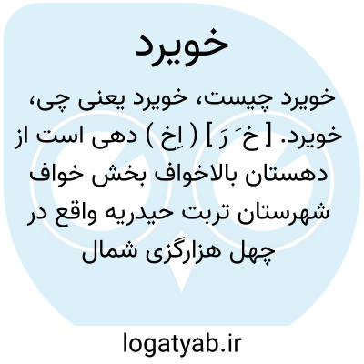 خویرد. [ خ َ رَ ] ( اِخ ) دهی است از دهستان بالاخواف بخش خواف شهرستان تربت حیدریه واقع در چهل هزارگزی شمال باختری رود و نه هزارگزی شمال سلامی. این دهکده در دامنه کوه قرار دارد با آب و هوای معتدل و 266 تن سکنه. آب آن از قنات و محصول آن غلات و پنبه و زیره و شغل اهالی زراعت و گله داری و راه مالرو است. ( از فرهنگ جغرافیایی ایران ج 9 ).