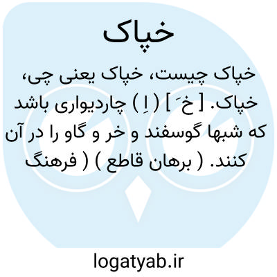 خپاک. [ خ َ ] ( اِ ) چاردیواری باشد که شبها گوسفند و خر و گاو را در آن کنند. ( برهان قاطع ) ( فرهنگ جهانگیری ) ( انجمن آرای ناصری ) ( آنندراج ) ( ناظم الاطباء ). نشستگاه گوسفندان. ( شرفنامه منیری ). آغل: