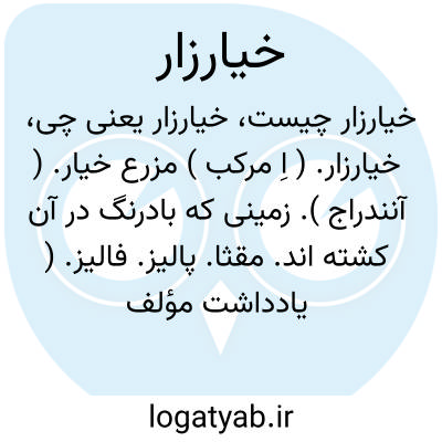 خیارزار. [ خ َ ] ( اِخ ) دهی است از دهستان شبانکاره بخش برازجان شهرستان بوشهر، واقع در 36 هزارگزی شمال باختری برازجان و کنار راه فرعی برازجان به گناوه با 260 تن سکنه. آب آن از چاه است. ( از فرهنگ جغرافیایی ایران ج 7 ).