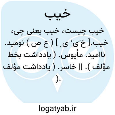 نا امیدی. خسران. محروم شدن. در نهایه می‏گوید: خیبة به معنی خسران و حرمان است. قاموس آن را نومیدی و زیان و حرمان گفته است. از رحمت خدا نومید شد و یا به ضرر افتاد آنکه دروغ بست پس نومید یا زیان دیده بر گردند.