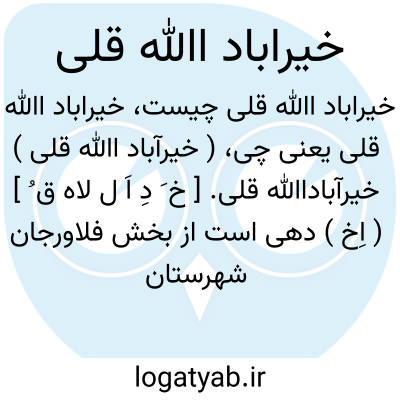 ( خیرآباد اﷲ قلی ) خیرآباداﷲ قلی. [ خ َ دِ اَ ل لاه ق ُ ] ( اِخ ) دهی است از بخش فلاورجان شهرستان اصفهان، واقع در 17 هزارگزی جنوب باختر فلاورجان. متصل بشوسه مبارک آباد آب آن اززاینده رود است. ( از فرهنگ جغرافیایی ایران ج 10 ).