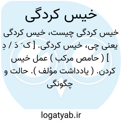لغت نامه دهخدا خیس کردگی. [ ک َ دَ / دِ ] ( حامص مرکب ) عمل خیس کردن. ( یادداشت مؤلف ). حالت و چگونگی خیس کرده. ترنهادگی.