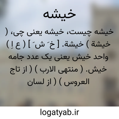 ( خیشة ) خیشة. [ خ َ ش َ ] ( ع اِ ) واحد خیش یعنی یک عدد جامه خیش. ( منتهی الارب ) ( از تاج العروس ) ( از لسان العرب ).