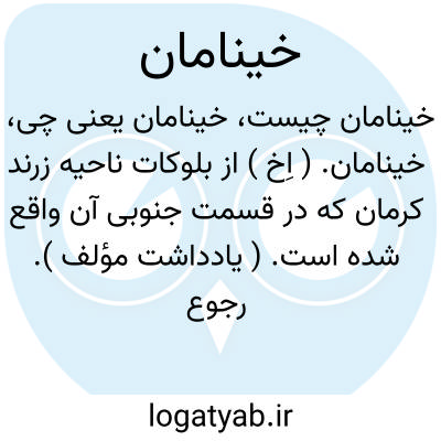 لغت نامه دهخدا خینامان. ( اِخ ) از بلوکات ناحیه زرند کرمان که در قسمت جنوبی آن واقع شده است. ( یادداشت مؤلف ). رجوع به خنامان شود.