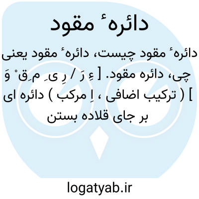 دائره مقود. [ ءِ رَ / رِ ی ِ م ِق ْ وَ ] ( ترکیب اضافی، اِ مرکب ) دائره ای بر جای قلاده بستن اسب. و هی الخامسة من الدوائر التی تکون فی الخیل،هی التی تکون فی موضع القلادة. ( صبح الاعشی ج 2 ص 29 ).