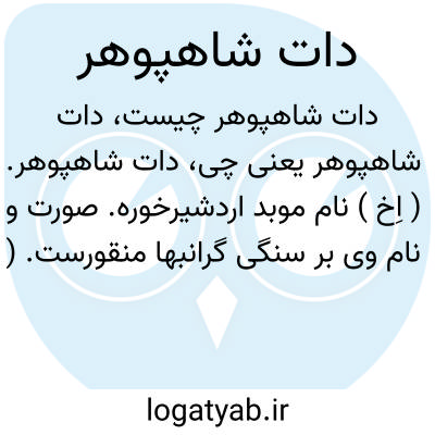دات شاهپوهر. ( اِخ ) نام موبد اردشیرخوره. صورت و نام وی بر سنگی گرانبها منقورست. ( سبک شناسی ج 1 ص 51 بنقل از ایران در زمان ساسانیان چ 1 ص 72 ).