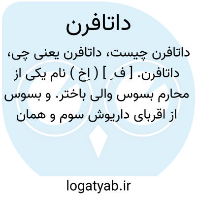 داتافرن. [ ف ِ ] ( اِخ ) نام یکی از محارم بسوس والی باختر. و بسوس از اقربای داریوش سوم و همان کسی است که بدستیاری چند تن دیگر داریوش را دستگیر کرد و داریوش بدست ساتی برزن و برازانت کشته شد. این محرم بسوس، یعنی داتافرن سرانجام بر ولینعمت خود نیز غدر ورزید و او را که بر اسکندر شوریده بود گرفتار و تسلیم کرد و بعدها خود او را نیز که از در مخالفت درآمده بود سکاهای داهی ( داهیان ) گرفتار و تسلیم اسکندر کردند. ( ایران باستان ج 2 ص 1696 و 1697 و 1698 و 1727 ).