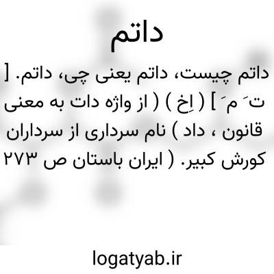 داتم. [ ت َ م َ ] ( اِخ ) ( از واژه دات به معنی قانون، داد ) نام سرداری از سرداران کورش کبیر. ( ایران باستان ص 273 و 274 ).
