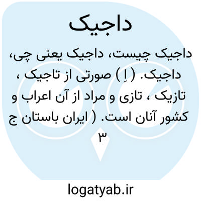 داجیک. ( اِ ) صورتی از تاجیک، تازیک، تازی و مراد از آن اعراب و کشور آنان است. ( ایران باستان ج 3 ص 2592 و 2596 ). اما این قول براساسی نیست و تاجیک ایرانی تبار فارسی زبان است. مقابل ترک.