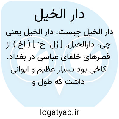 دارالخیل. [ رُل ْ خ َ ] ( اِخ ) از قصرهای خلفای عباسی در بغداد. کاخی بود بسیار عظیم و ایوانی داشت که طول و عرض آن هر یک هزار ذراع بود و در اعیاد، و هنگام ورود رسولان و پیکان دیگر کشورها در هرطرف آن پانصد اسب سوار می ایستاد. ( معجم البلدان ).
