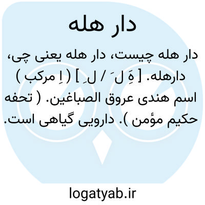 لغت نامه دهخدا دارهله. [ هَِ ل َ / ل ِ ] ( اِ مرکب ) اسم هندی عروق الصباغین. ( تحفه حکیم مؤمن ). دارویی گیاهی است.