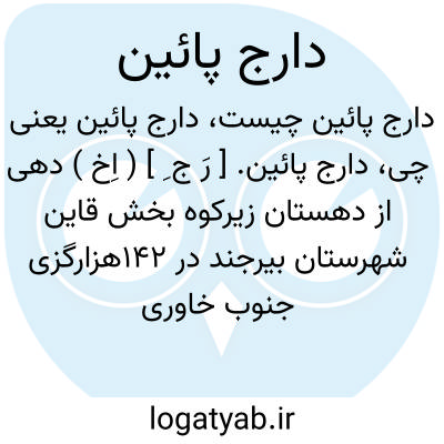 دارج پائین. [ رَ ج ِ ] ( اِخ ) دهی از دهستان زیرکوه بخش قاین شهرستان بیرجند در 142هزارگزی جنوب خاوری قاین. کوهستانی. گرمسیر و دارای 90 تن سکنه است. آب آن از قنات. محصول آنجا غلات، شغل اهالی، زراعت است راه مالرو دارد. ( از فرهنگ جغرافیایی ایران ج 9 ).