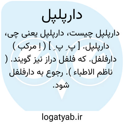 لغت نامه دهخدا دارپلپل. [ پ ِ پ ِ ] ( اِ مرکب ) دارفلفل. که فلفل دراز نیز گویند. ( ناظم الاطباء ). رجوع به دارفلفل شود.
