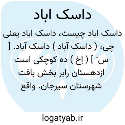 ( داسک آباد ) داسک آباد. [ س َ ] ( اِخ ) ده کوچکی است ازدهستان رابر بخش بافت شهرستان سیرجان. واقع در 35هزارگزی شمال خاوری بافت. سر راه فرعی رابر به زنجان. دارای 12 تن سکنه. ( از فرهنگ جغرافیایی ایران ج 8 ).