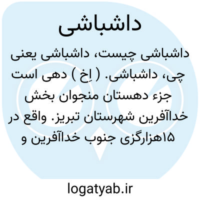 داشباشی. ( اِخ ) دهی است جزء دهستان منجوان بخش خداآفرین شهرستان تبریز. واقع در 15هزارگزی جنوب خداآفرین و 20هزارگزی شوسه اهر به کلیبر. کوهستانی معتدل دارای 332 تن سکنه است. آب آن از چشمه، محصول آن غلات، و شغل اهالی زراعت و گله داری و راه آن مالرو است. ( از فرهنگ جغرافیایی ایران ج 4 ).