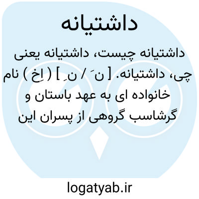 داشتیانه. [ ن َ / ن ِ ] ( اِخ ) نام خانواده ای به عهد باستان و گرشاسب گروهی از پسران این خانواده را در جنگها و فتوحات خویش همانند پسران چند خاندان دیگر بکشته است. ( مزدیسنا ص 420 ).
