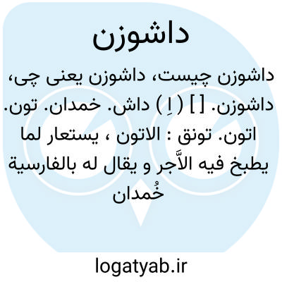 داشوزن. [ ] ( اِ ) داش. خمدان. تون. اتون. تونق: الاتون، یستعار لما یطبخ فیه الاَّجر و یقال له بالفارسیة خُمدان و تونق و داشوزن. ( المغرب مطرزی ). کلمه داش در فرهنگها آمده است اما داشوزن را ندیده ام. ( یادداشت مؤلف ).