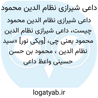 [ویکی نور] «سید نظام الدین، محمود بن حسن حسینی واعظ داعی شیرازی» متخلص به داعی، در شیراز به دنیا آمد. شهرت علمی و فرهنگی وی شاعر و عارف می باشد.