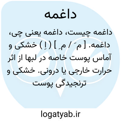 داغمه. [ م َ / م ِ ] ( اِ ) خشکی و آماس پوست خاصه در لبها از اثر حرارت خارجی یا درونی. خشکی و ترنجیدگی پوست لب بر اثر بیماری حاد یا تشنگی.