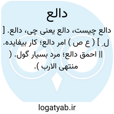 لغت نامه دهخدا دالع. [ ل ِ ] ( ع ص ) امر دالع؛ کار بیفایده. || احمق دالع؛ مرد بسیار گول. ( منتهی الارب ).