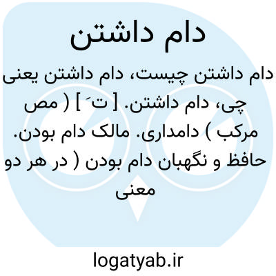 لغت نامه دهخدا دام داشتن. [ ت َ ] ( مص مرکب ) دامداری. مالک دام بودن. حافظ و نگهبان دام بودن ( در هر دو معنی آلت صید و حیوان اهلی ). || وسیله صید قرار دادن دام و تله: زانکه دین را دام دارد بیشتر پرهیز کن زانکه سوی او چو آمد صید را زنهار نیست.ناصرخسرو.