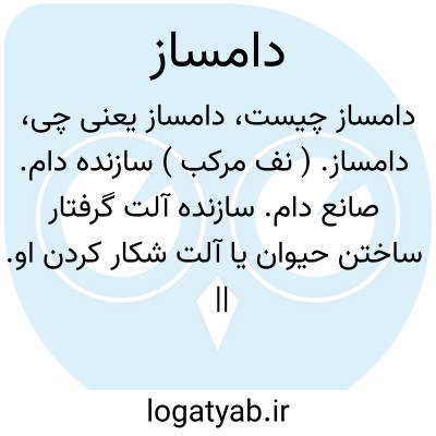 لغت نامه دهخدا دامساز. ( نف مرکب ) سازنده دام. صانع دام. سازنده آلت گرفتار ساختن حیوان یا آلت شکار کردن او. || مجازاً حیله گر. اسباب چین. پاپوش دوز. فریبنده. مزوّر. گربز. گرفتارکننده. بمکر برآینده: برآراست گرسیوز دامسازسری پر ز کینه دلی پر ز آز.فردوسی.