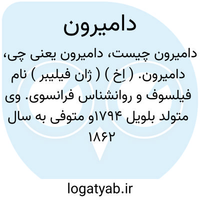 دامیرون. ( اِخ ) ( ژان فیلیبر ) نام فیلسوف و روانشناس فرانسوی. وی متولد بلویل 1794و متوفی به سال 1862 م. است. ( قاموس الاعلام ترکی ).