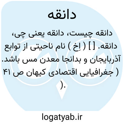 دانقه. [ ] ( اِخ ) نام ناحیتی از توابع آذربایجان و بدانجا معدن مس باشد. ( جغرافیایی اقتصادی کیهان ص 41 ).