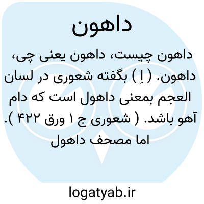 داهون. ( اِ ) بگفته شعوری در لسان العجم بمعنی داهول است که دام آهو باشد. ( شعوری ج 1 ورق 422 ). اما مصحف داهول مینماید.