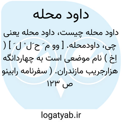 داودمحله. [ وو م َ ح َل ْ ل َ ] ( اِخ ) نام موضعی است به چهاردانگه هزارجریب مازندران. ( سفرنامه رابینو ص 123 بخش انگلیسی ).