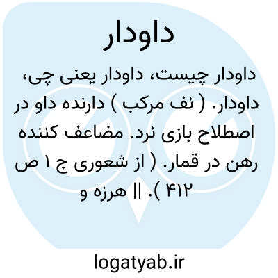 داودار. ( نف مرکب ) دارنده داو در اصطلاح بازی نرد. مضاعف کننده رهن در قمار. ( از شعوری ج 1 ص 412 ). || هرزه و هذیان و ذم و ناسزا و فحشیات. ( شعوری ج 1 ص 412 ).