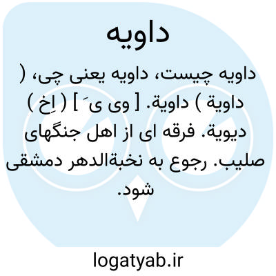( داویة ) داویة. [ وی ی َ ] ( اِخ ) دیویة. فرقه ای از اهل جنگهای صلیب. رجوع به نخبةالدهر دمشقی شود.