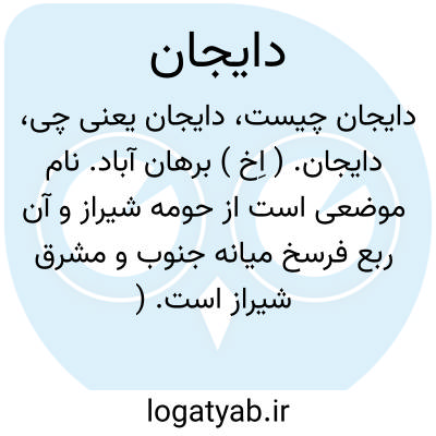 دایجان. ( اِخ ) برهان آباد. نام موضعی است از حومه شیراز و آن ربع فرسخ میانه جنوب و مشرق شیراز است. ( فارسنامه ناصری ص 191 ).