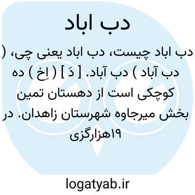 ( دب آباد ) دب آباد. [ دَ ] ( اِخ ) ده کوچکی است از دهستان تمین بخش میرجاوه شهرستان زاهدان. در 19هزارگزی جنوب باختری میرجاوه. کنار راه فرعی میرجاوه به خاش. با 45 تن سکنه. ( از فرهنگ جغرافیایی ایران ج 8 ).