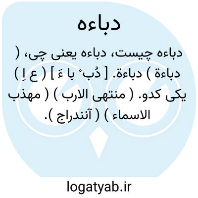 ( دباءة ) دباءة. [ دُب ْ با ءَ ] ( ع اِ ) یکی کدو. ( منتهی الارب ) ( مهذب الاسماء ) ( آنندراج ). رجوع به دُبّاء شود. ج، دُباء. ( دهار ).