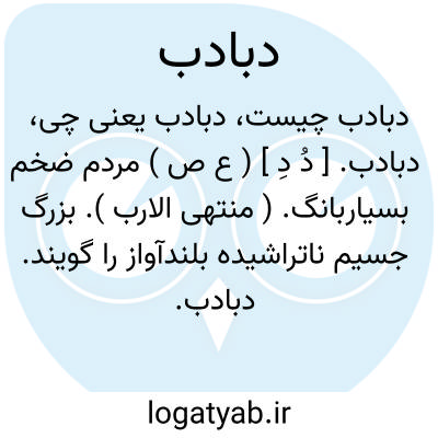 دبادب. [ دُ دِ ] ( ع ص ) مردم ضخم بسیاربانگ. ( منتهی الارب ). بزرگ جسیم ناتراشیده بلندآواز را گویند.