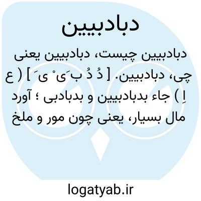 دبادبیین. [ دُ دُ ب َی ْ ی َ ] ( ع اِ ) جاء بدبادبیین و بدبادبی؛ آورد مال بسیار، یعنی چون مور و ملخ در کثرت. ( منتهی الارب ).