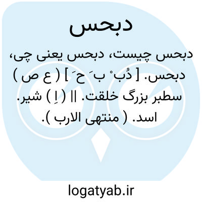 دبحس. [ دُب ْ ب َ ح َ ] ( ع ص ) سطبر بزرگ خلقت. || ( اِ ) شیر. اسد. ( منتهی الارب ).