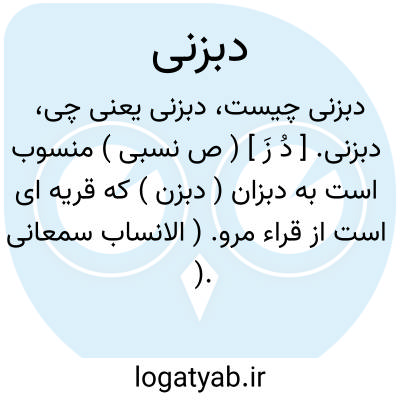 دبزنی. [ دُ زَ ] ( ص نسبی ) منسوب است به دبزان ( دبزن ) که قریه ای است از قراء مرو. ( الانساب سمعانی ).