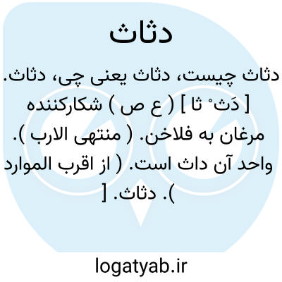 دثاث. [ دَث ْ ثا ] ( ع ص ) شکارکننده مرغان به فلاخن. ( منتهی الارب ). واحد آن داث است. ( از اقرب الموارد ).
