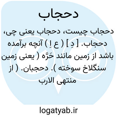 دحجاب. [ دِ ] ( ع اِ ) آنچه برآمده باشد از زمین مانند حَرَّه ( یعنی زمین سنگلاخ سوخته ). دحجبان. ( از منتهی الارب ). ما علا من الارض کالحرة. ( اقرب الموارد ).