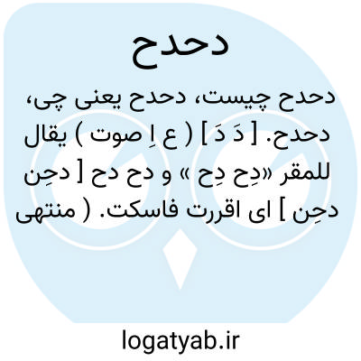 لغت نامه دهخدا دحدح. [ دَ دَ ] ( ع اِ صوت ) یقال للمقر «دِح دِح » و دح دح [ دحِن دحِن ] ای اقررت فاسکت. ( منتهی الارب ). هرگاه خواهند که کسی را از حرف زدن و تکلم بازدارند این کلمات را استعمال نمایند. ( آنندراج ).