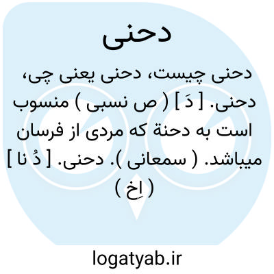 دحنی. [ دَ ] ( ص نسبی ) منسوب است به دحنة که مردی از فرسان میباشد. ( سمعانی ).