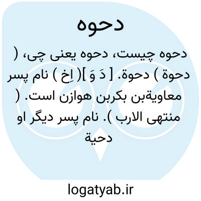 ( دحوة ) دحوة. [ دَ وَ ]( اِخ ) نام پسر معاویةبن بکربن هوازن است. ( منتهی الارب ). نام پسر دیگر او دحیة است. رجوع به دحیة شود.